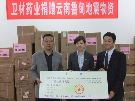 衛(wèi)材公司(Eisai)向云南地震災(zāi)區(qū)捐贈了總價60萬元的醫(yī)療物資和現(xiàn)金