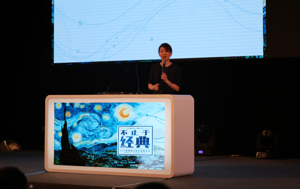 Ms. Feng delivers her speech.