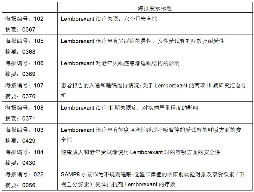衛(wèi)材將在睡眠學(xué)會(huì)第33屆年會(huì)上發(fā)布LEMBOREXANT最新數(shù)據(jù),包括多個(gè)III期臨床研究綜合分析